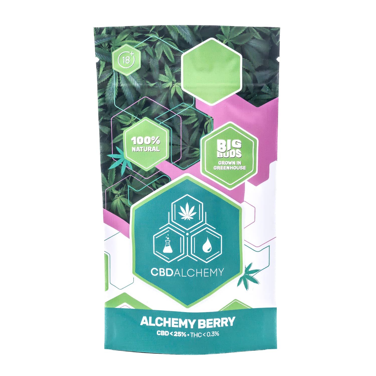 CBD: < 25% THC: < 0.2% Dominante: Híbrido, Indica predominante La Alchemy Berry es una variedad de cannabis creada específicamente para tener un alto contenido de cannabidiol (CBD) y un bajo contenido de tetrahidrocannabinol (THC). Esta cepa es reconocida por su sabor dulce y afrutado, matizado con toques de frambuesa y notas terrosas. Apariencia Alchemy Berry ofrece un espectáculo visual con sus cogollos densamente estructurados adornados con vibrantes tonalidades verdes y púrpuras y una generosa capa de tricomas. Estas características reflejan su genética de alta calidad y su meticuloso cuidado durante el cultivo orgánico. Aroma Esta cepa es famosa por su deliciosa mezcla de aromas dulces y afrutados, dominados por notas de frambuesa. Los matices terrosos añaden un toque único, convirtiéndola en un delicioso viaje sensorial que cautiva e intriga. Cada experiencia con Alchemy Berry es única, ya que la intensidad y los perfiles de sabor pueden variar ligeramente en función del fenotipo y las condiciones de cultivo. Origen y cultivo Alchemy Berry ha sido cuidadosamente criada para maximizar su contenido de CBD y minimizar los niveles de THC. Esta variedad se cultiva orgánicamente en interior, garantizando la máxima calidad y pureza. El proceso de cultivo se adhiere a prácticas respetuosas con el medio ambiente, dando como resultado una variedad de cannabis sostenible y potente. Orígenes Alchemy Berry ha sido criada selectivamente por el equipo de CBD Alchemy para ofrecer una mezcla única de sabores dulces y afrutados con alto contenido de CBD y bajo contenido de THC. El linaje de esta cepa ha sido cuidadosamente elaborado para maximizar los beneficios terapéuticos potenciales del CBD, por lo que es una opción ideal para aquellos que buscan una experiencia menos psicoactiva pero rica en CBD. Certificación y Variabilidad del CBD El porcentaje de CBD indicado más arriba es puramente indicativo y representa el valor máximo obtenido en el laboratorio para esta genética. Por desgracia, el producto es una planta y puede haber variaciones significativas en el porcentaje de cannabinoides de una flor a otra. Además, los lotes suelen ser ligeramente diferentes entre sí. A pesar de esta variabilidad, CBD Alchemy garantiza la legalidad de todos los lotes individuales, ya que el THC se analiza diariamente en todos los productos comercializados.
