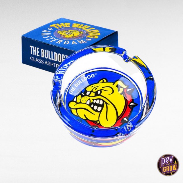 El cenicero de cristal Bulldog tiene un logotipo a todo color en la parte inferior. Tiene 10 cm de diámetro y es de cristal de alta calidad fácil de limpiar.